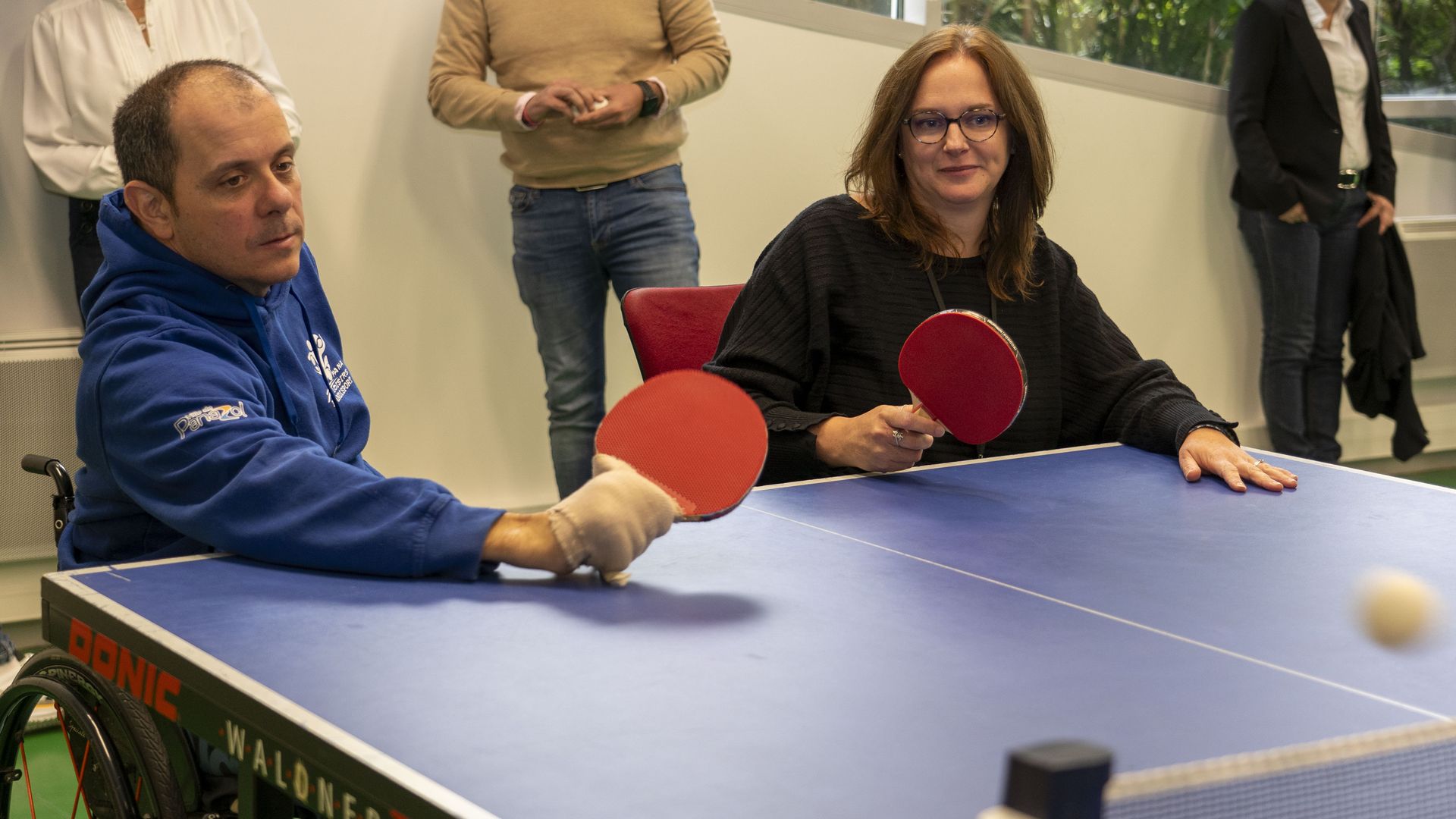 Les participants ont pu échanger quelques balles ou quelques mots avec Jean-François Ducay, para pongiste double médaillé aux Jeux de Londres et de Rio, spécialement présent pour l’occasion. Il était accompagné de membres de son association Pana-Loisirs Handisport. Tous se sont aussi prêtés avec plaisir au jeu des questions pour partager, au-delà du sport, leur parcours de vie.