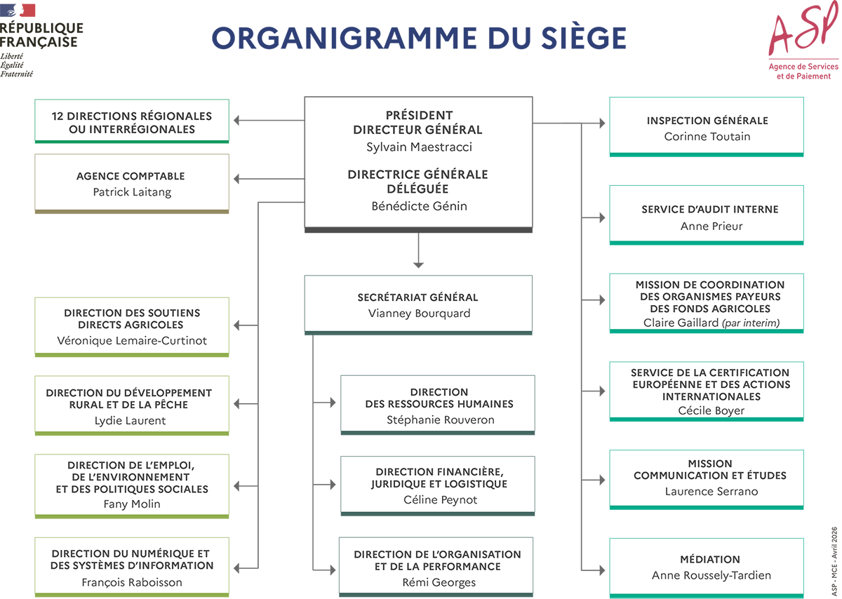 Créée en 2009, l’ASP compte aujourd’hui plus de 2 100 agents présents sur tout le territoire, avec un siège situé à Limoges, une antenne à Montreuil, ainsi que 12 directions régionales et interrégionales en métropole et en outre-mer. Au cœur de notre organisation, nos directions et missions spécialisées, pilotent le déploiement des politiques publiques et garantissent le fonctionnement opérationnel de l’établissement.